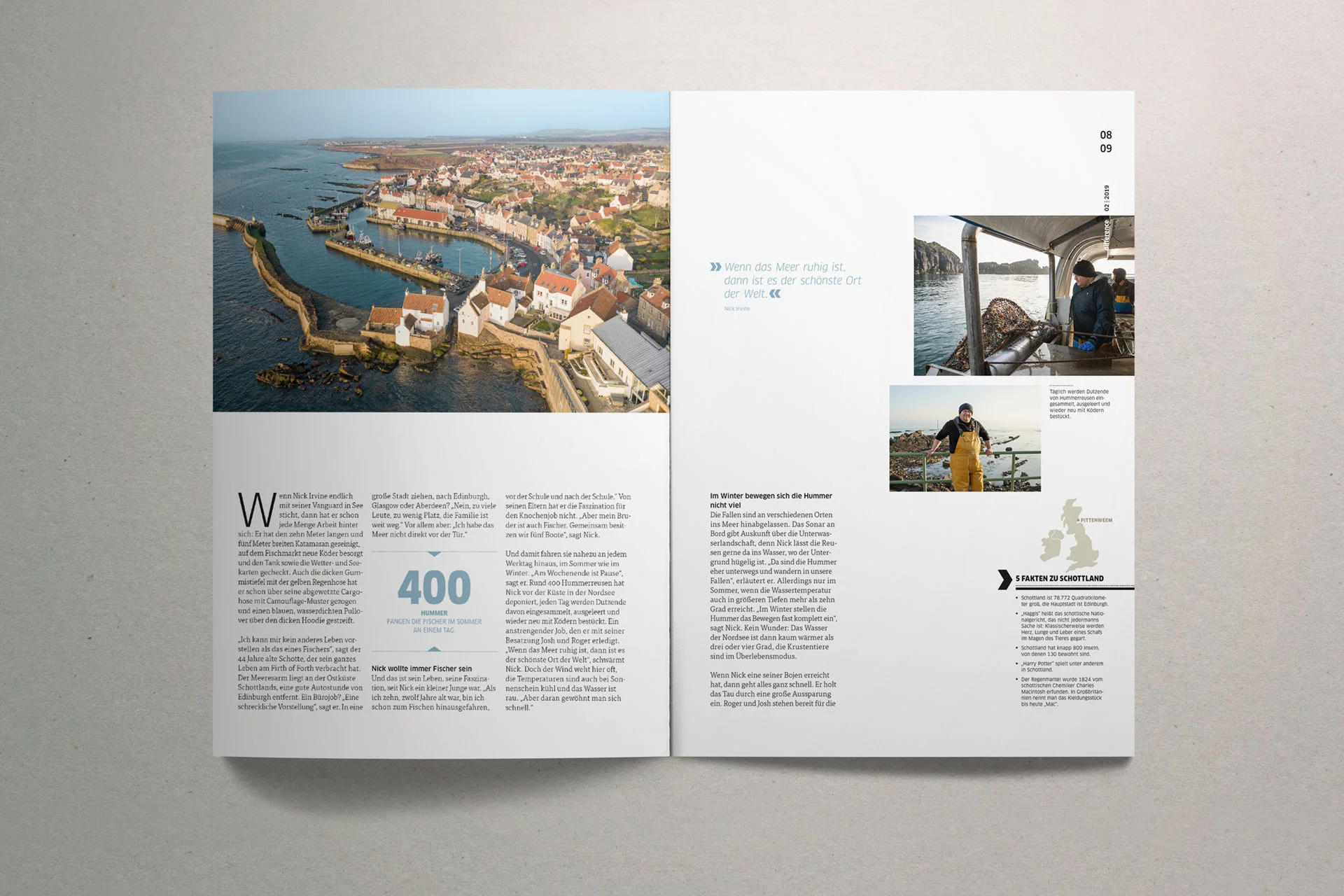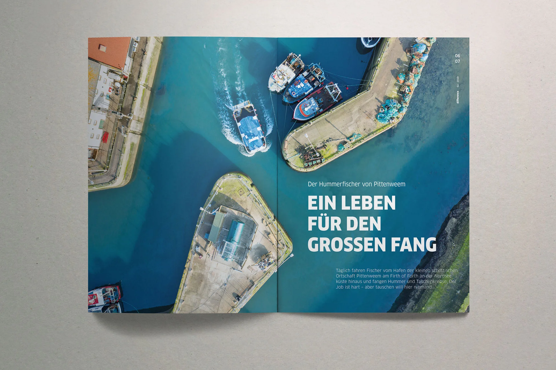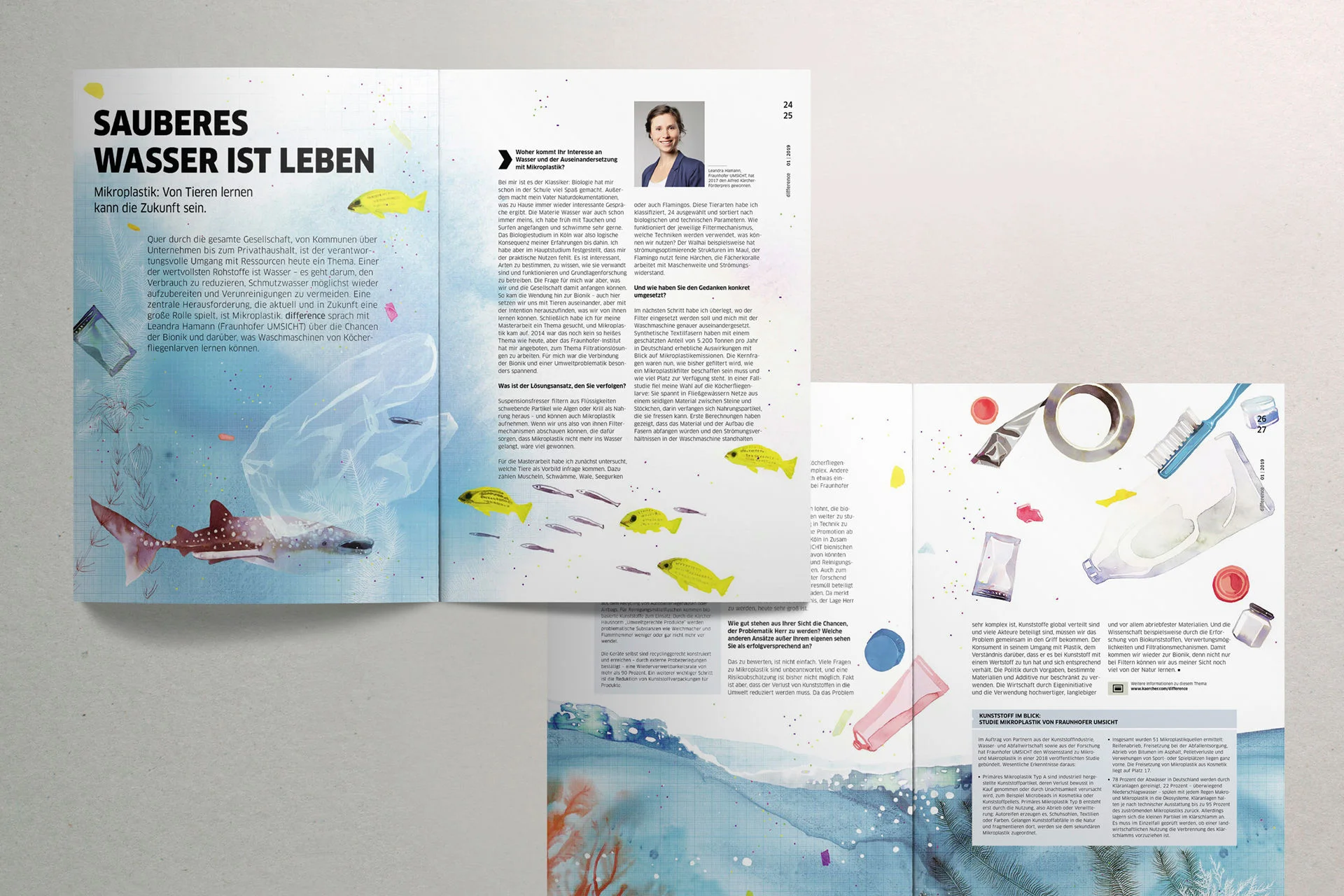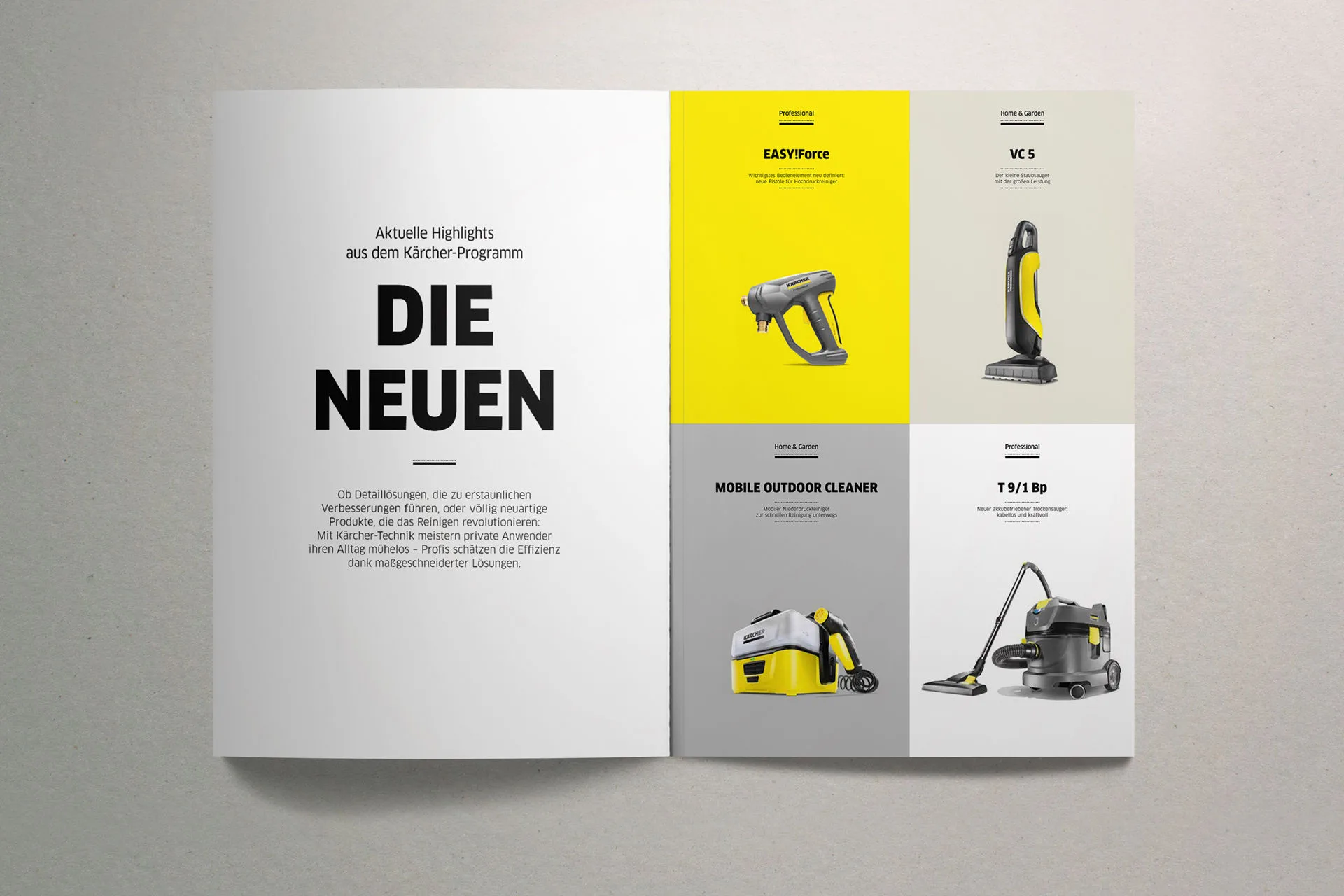 Editorial Design vom Feinsten: Das monothematische Kärcher Kundenmagazin »difference« legt den Fokus auf abwechslungsreiches Storytelling mit spannenden Geschichten und großzügigen Bildwelten. Übergreifende Themen wie »Horizonte« oder »Zeit« werden im Innenteil mit Fotografie, Illustration oder Collagen kreativ bespielt und schaffen inhaltlich eine Verbindung zu dem weltweit führenden Anbieter für Reinigungstechnik. Für einen magazinigen Look wurde das Corporate Design für die hochwertige Publikation um zwei Schriften und einige Farben erweitert und durfte hier ein weniger freier umgesetzt werden. Das Magazin erschien weltweit in mehreren Sprachen zwei Mal pro Jahr. Die Titel-Story und die wichtigsten Artikel wurden zusätzlich online in den Kärcher Themenwelten bespielt und teilweise durch weitere Inhalte ergänzt.