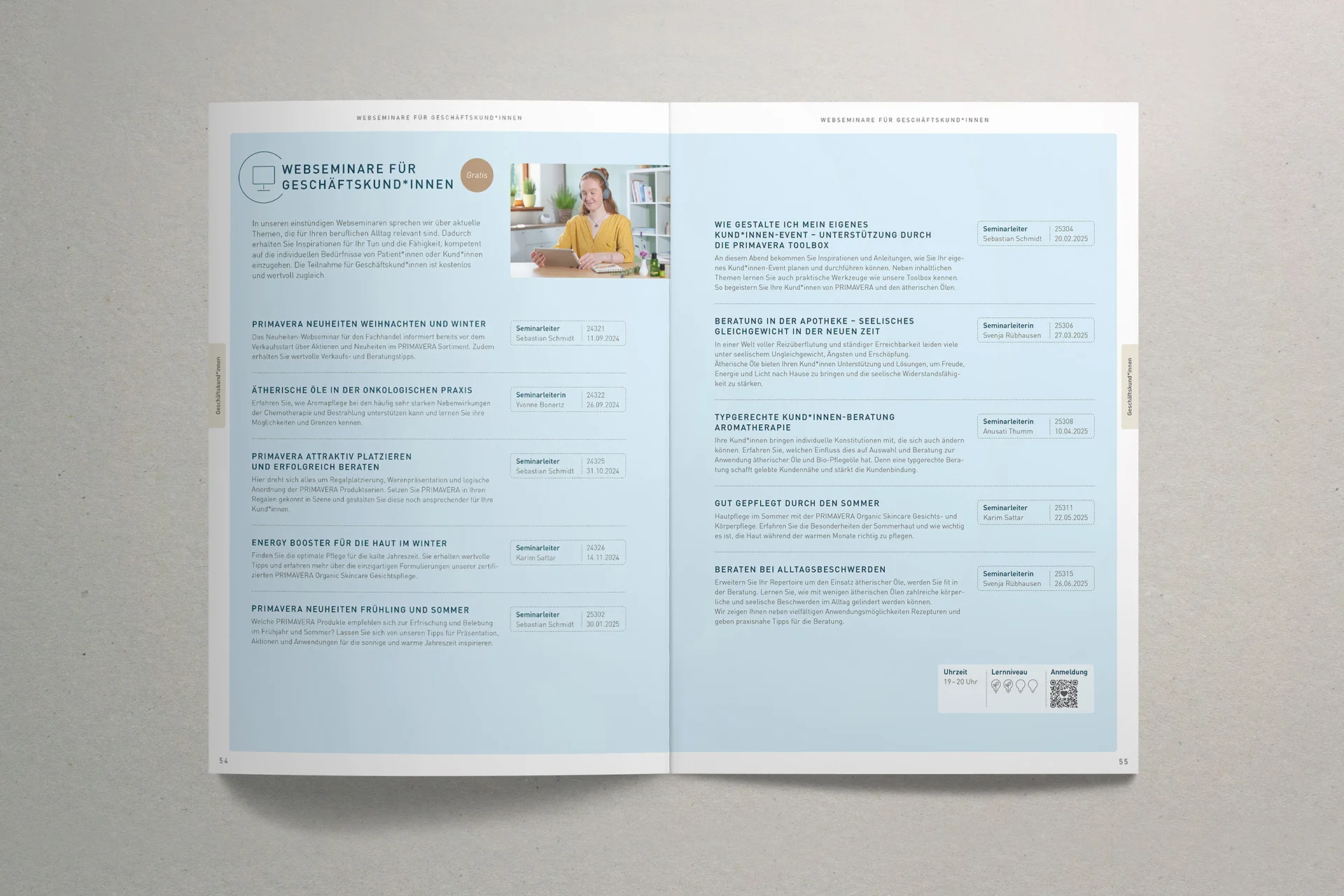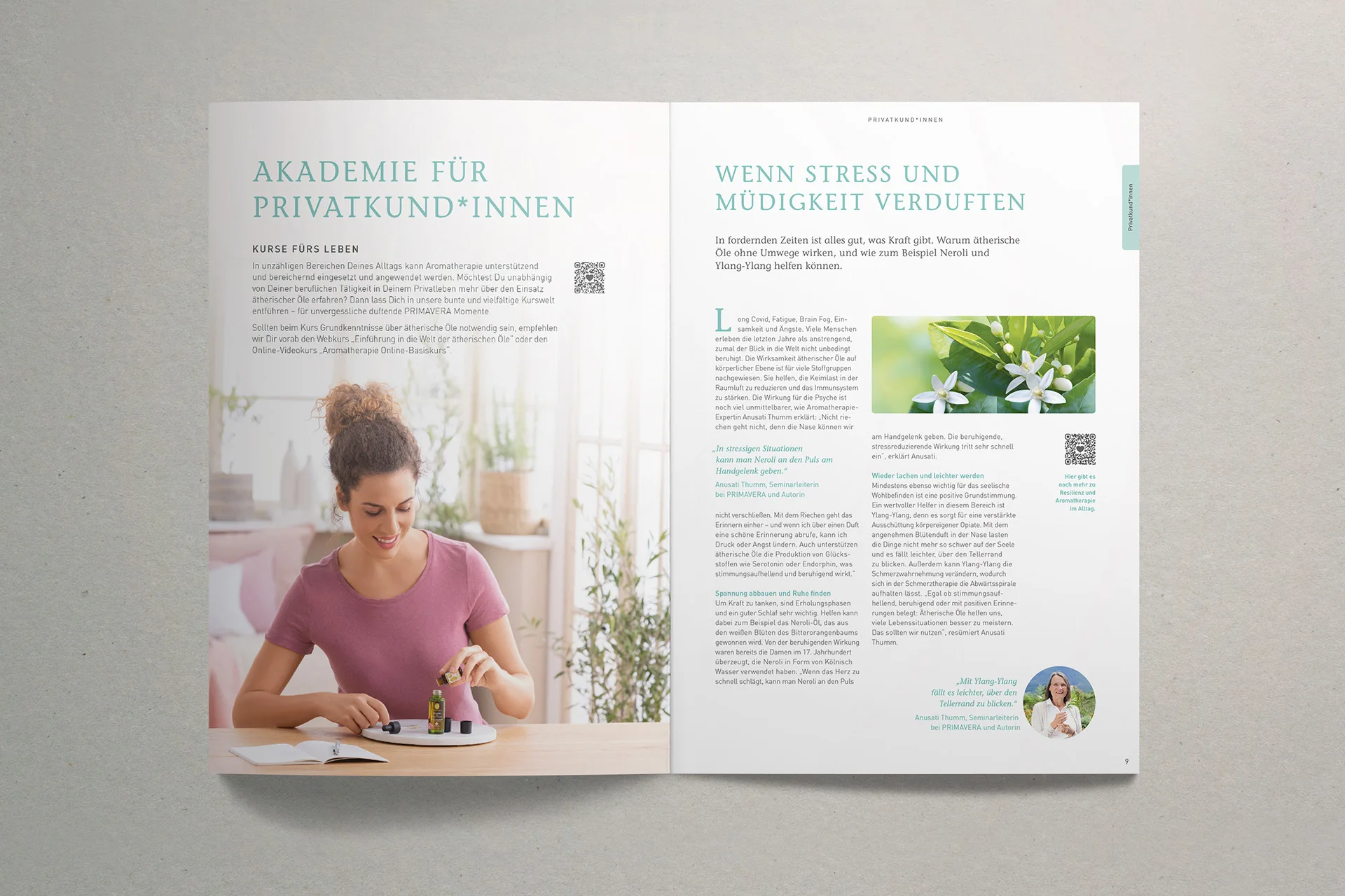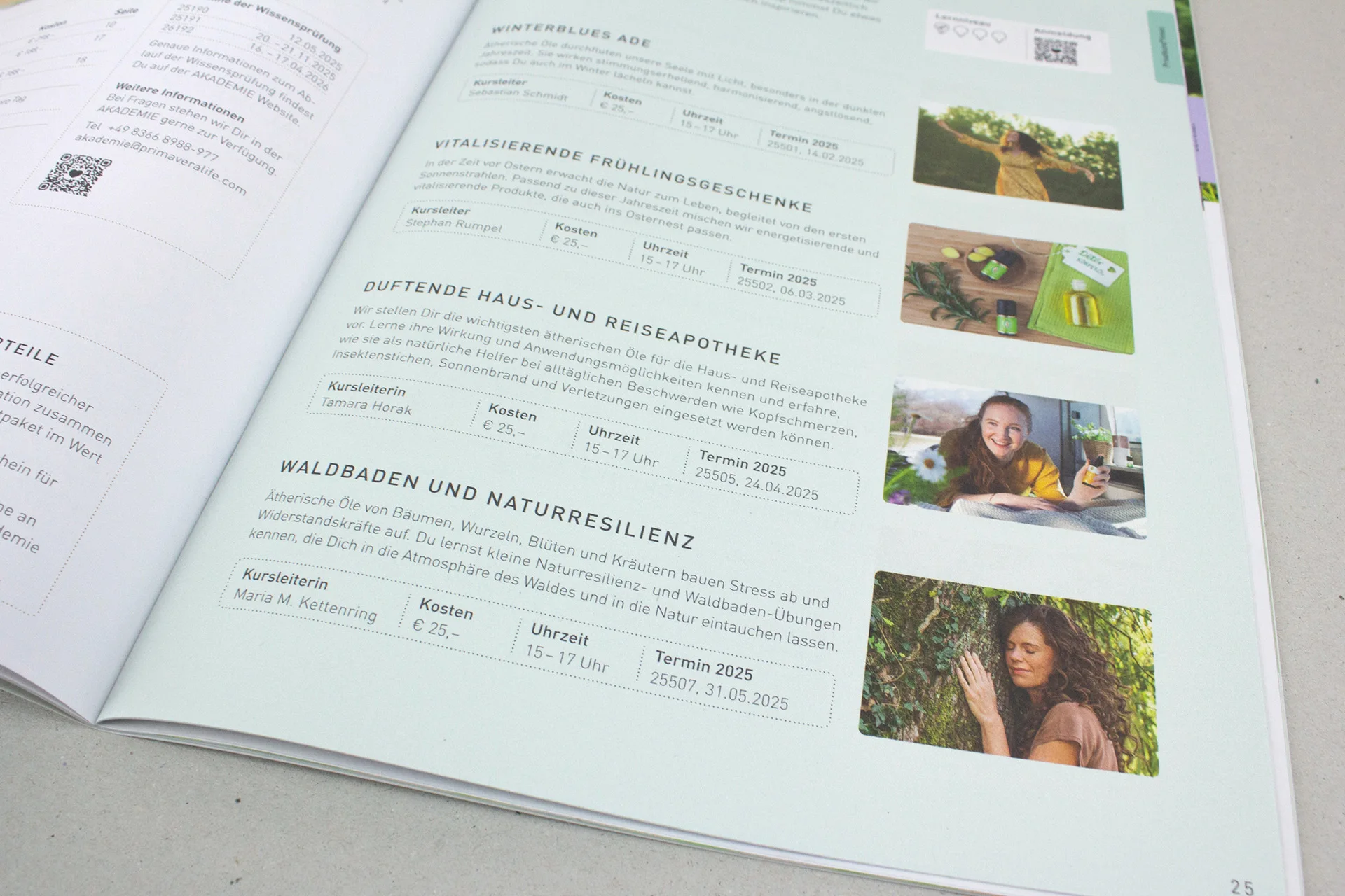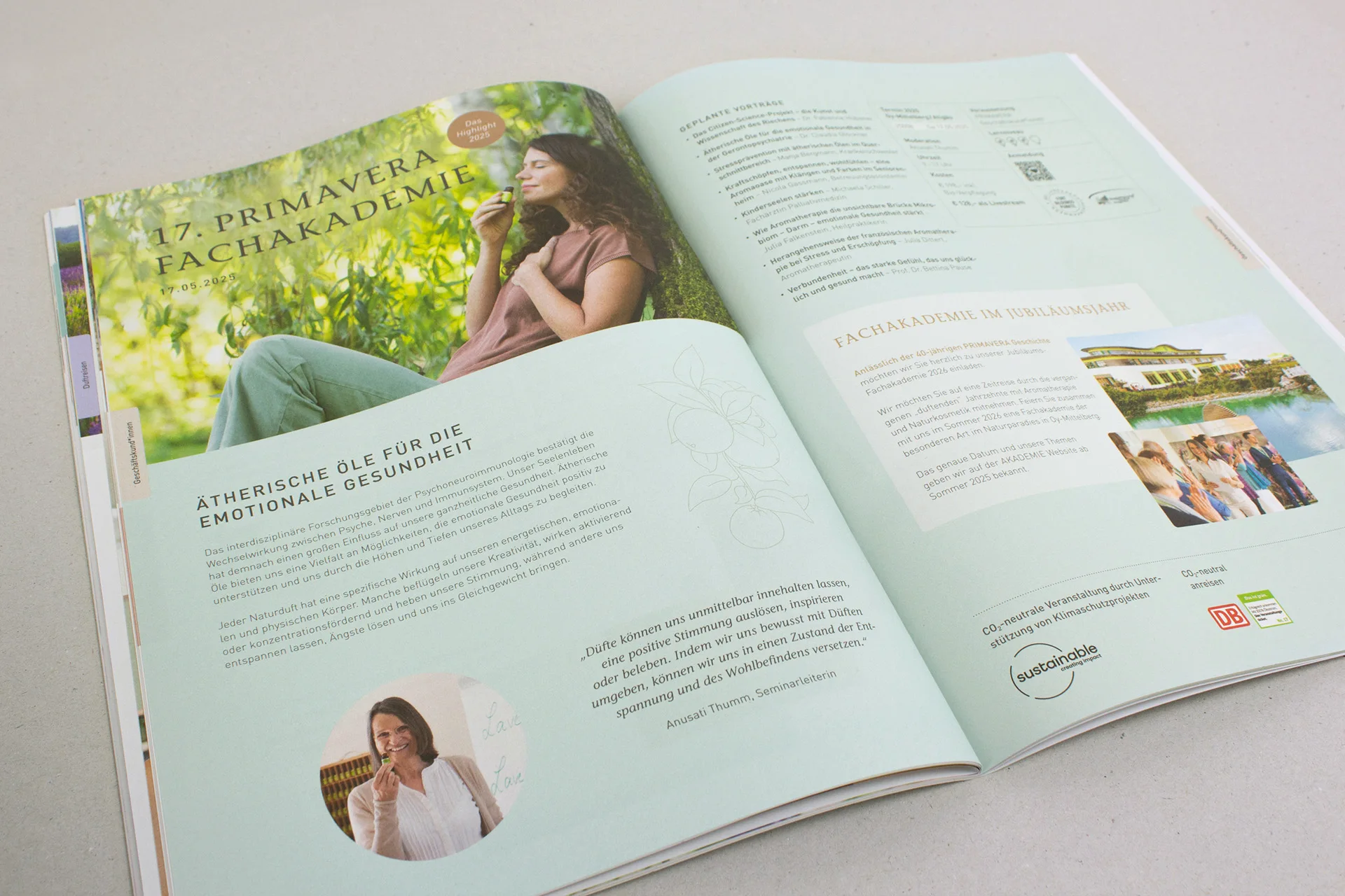 Dieses Jahr erhielt das Programm neben der inhaltlichen Aktualisierung auch einen vollständigen Layout-Relaunch. Inspiriert vom neuen PRIMAVERA Magazin hat die neue Programmausgabe nun ebenfalls Magazin-Charakter. Mit Artikeln, Interviews und Reiseberichten zu Themen der Aromatherapie und der Akademie bieten die neuen Kapiteleinstiege einen zusätzlichen Mehrwert für die Leser*innen.“